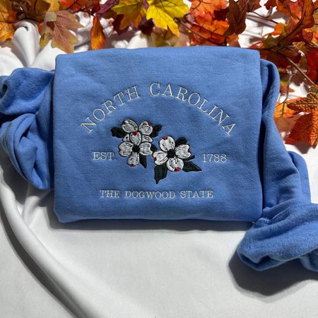Embroidered North Carolina Dogwood Sweatshirt: State Flower Crewneck