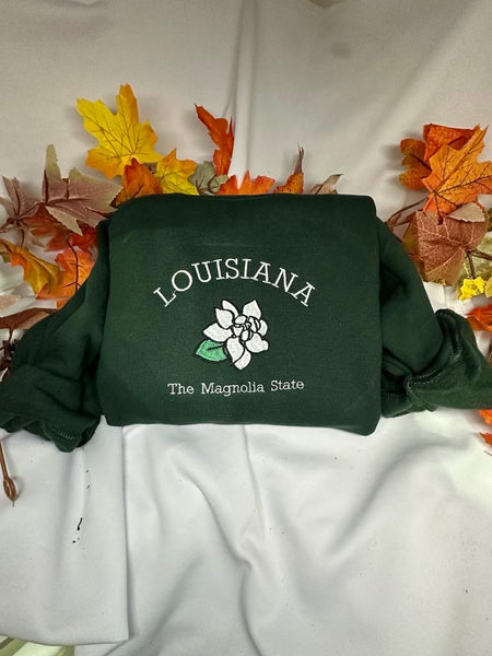 Embroidered Louisiana Sweatshirt: Magnolia State Flower Crewneck