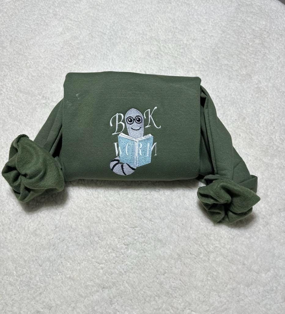 Bookworm Embroidered sweatshirt; cute teacher books lover crewneck;