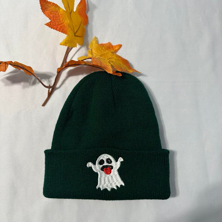 Halloween Ghost Embroidered Beanie - Custom Knit Cuffed Beanie