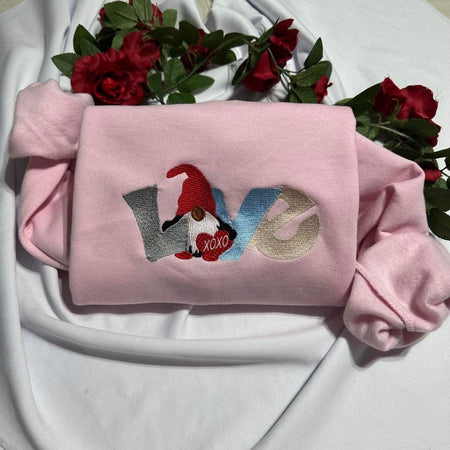 Gnome Valentine Embroidered Sweatshirt: Love Crewneck