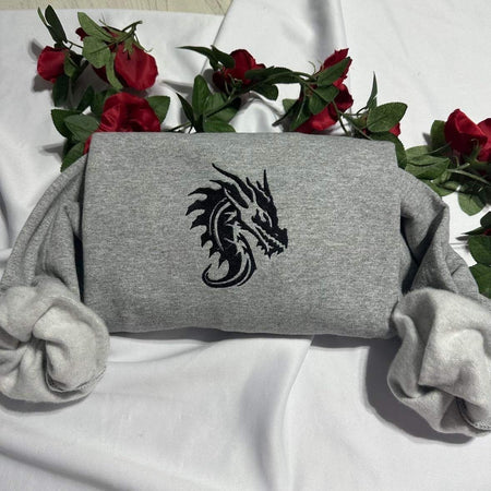 Dragon Embroidered Sweatshirt: Fantasy Crewneck, Dragon Lover Gift