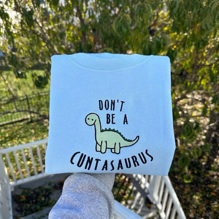 Don't Be A Cuntasaurus Embroidered Sweatshirt; Funny Dinosaur Custom Embroidery. Silly Birthday/Valentines Day Gift for her or Him
