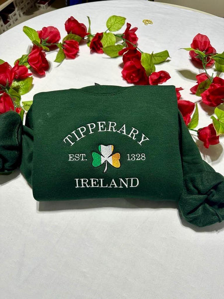 Embroidered Tipperary Ireland Sweatshirt: Retro Irish Shamrock