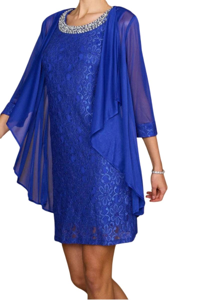 Elevate your style with the exquisite wholesale R&M Richards Embellished Lace Sheath Dress & Jacket. The intricate lace detailing and embellishments add a touch of elegance to this wholesale set. Perfect for any special occasion, this dress and jacket duo will make you feel confident and beautiful.