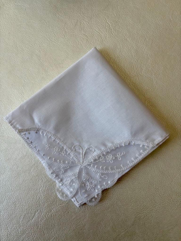 Crafted from 100% cotton, the handkerchief features a stunning lace butterfly corner design with intricate detailing — elegant, lightweight, and made to last. The delicate web of threadwork adds a vintage touch that makes this piece feel extra special.