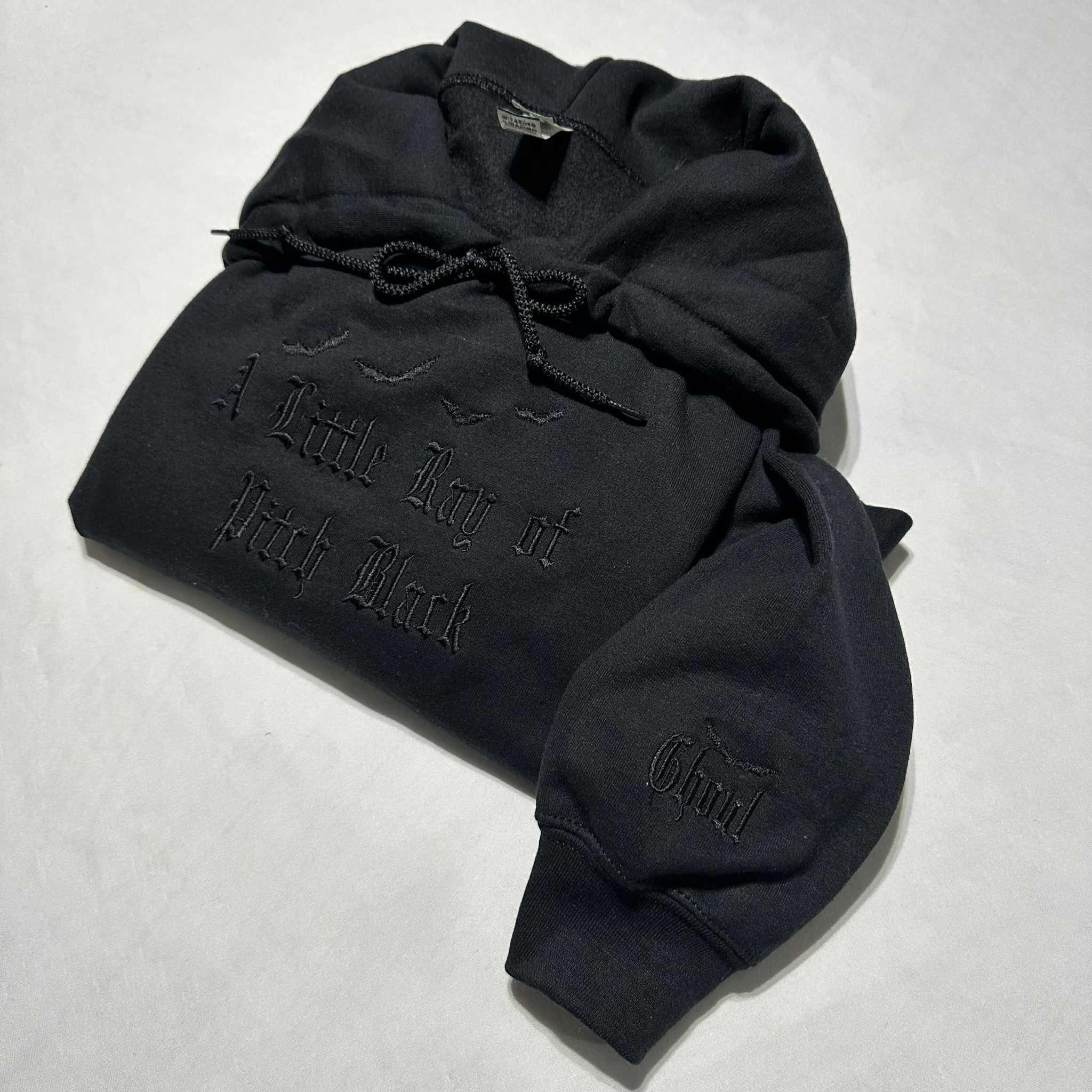 Embrace the spooky season with a twist of humor! Our “A Little Ray of Pitch Black” Embroidered Sweatshirt is the perfect blend of cozy comfort and dark Halloween humor. Featuring delicate black bat embroidery and witty text, this sweatshirt makes a bold yet playful statement for anyone who loves a touch of sarcasm with their spooky style.