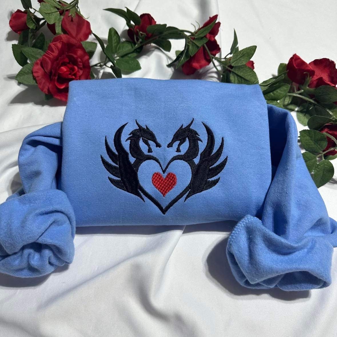 Add a touch of fierce elegance to your wardrobe with this Dragon Heart embroidered crewneck. Perfect as a gift or a treat for yourself, it’s a design that stands out wherever you go. Order yours today and wear your passion with pride!